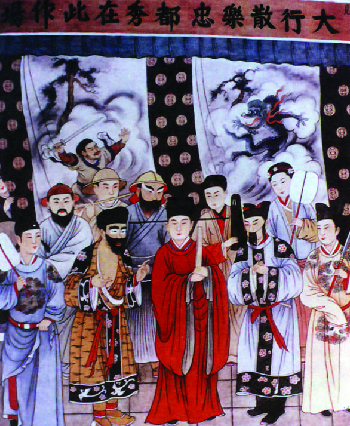 Through paintings and poetry from the Song Dynasty (960-1279 A.D.) we can confirm that women played prominent roles in Chinese Opera whether as performers or musicians. Figure 4.5 is an illustration of female performers from the Song Dynasty who were male impersonators as the clothing is distinctly male attire. In figure 4.6, we see female performers playing a variety of different roles as depicted in their corresponding costumes. They not only played instruments but also danced. (Liu, Y 2003, p. 43)