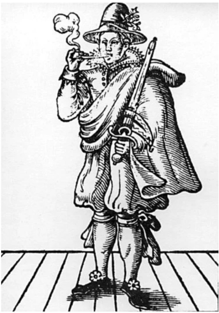 From childhood, Mary consistently wore masculine clothing—boots, doublets, cloaks, and later a sword—refusing the restrictive garments expected of women. This was not a disguise or temporary masquerade; Frith’s masculinity was sustained, public, and defiant. Her clothing alone brought repeated legal scrutiny under England’s sumptuary laws(1), which policed gender and class through dress. By age fifteen (c.1599), Frith had her first documented encounter with the law. Over the following decades, she became notorious for riotous behavior: heavy drinking, smoking tobacco, swearing, and frequenting taverns where she would entertain the guests with song and dance. She also ran a business retrieving and fencing stolen property, positioning herself as both criminal and entrepreneur. Pamphlets, ballads, and later biographies circulated widely during her lifetime, embellishing her exploits to address contemporary anxieties about disorderly women and masculine authority.
