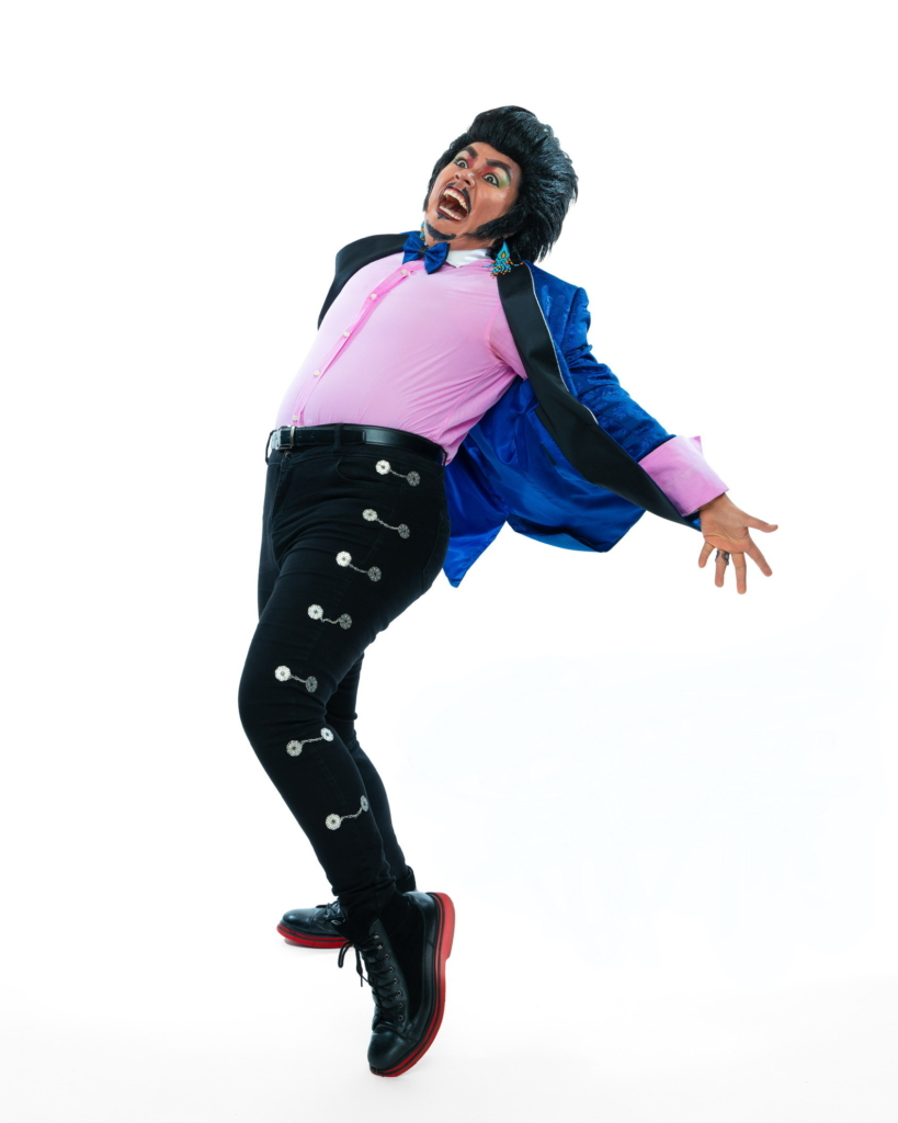 Originally from the east coast, Malcolm Xtasy moved to Los Angeles to get a better tan and has been Los Angeles’s favorite fuckboy ever since. His high energy, fun, often provocative performances have brough him to stages in London, Bristol, DC, and even all the way to Long Beach. In 2019-2020, he formed Man Candy Kings, which was the only all drag king show in LA at the time. Now, he frequents Precinct, Kiso, and your girlfriend’s DMs.