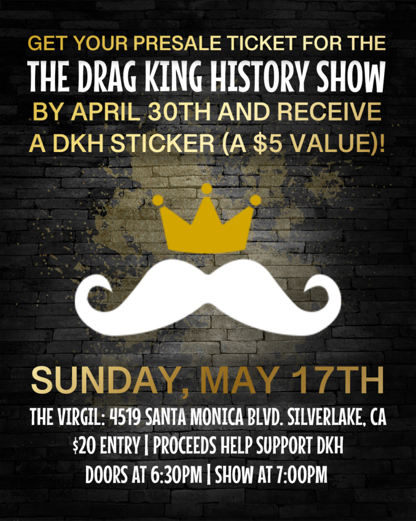 Buy your presale tickets in the month of April and receive a FREE Drag King History sticker ($5 value)!